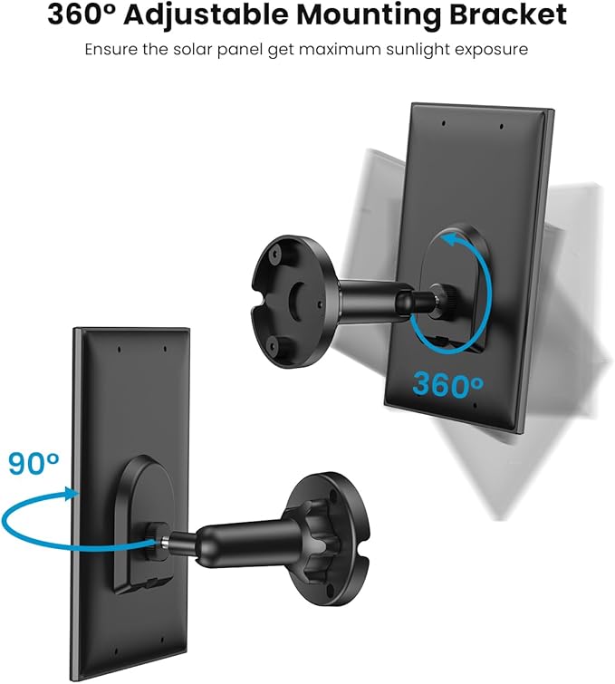 - 【Sunlight at the Perfect Angle】 With 360° swivel and 90° tilt adjustments, the flexible mount ensures the solar panel is always positioned to capture maximum sunlight for steady power.