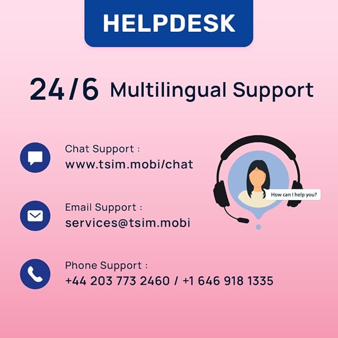 - 24x6 MULTILINGUAL SUPPORT: Get assistance in multiple languages via phone, email, or InstaChat (tsim.mobi/chat), Monday to Saturday.