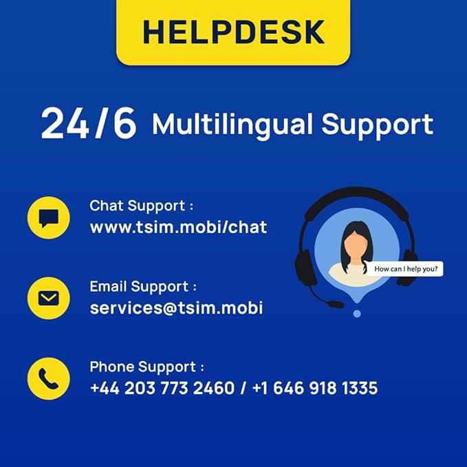 - 24x6 MULTILINGUAL SUPPORT: Get assistance in multiple languages via phone, email, or InstaChat (tsim.mobi/chat), Monday to Saturday. Contact details are included with the packaging.