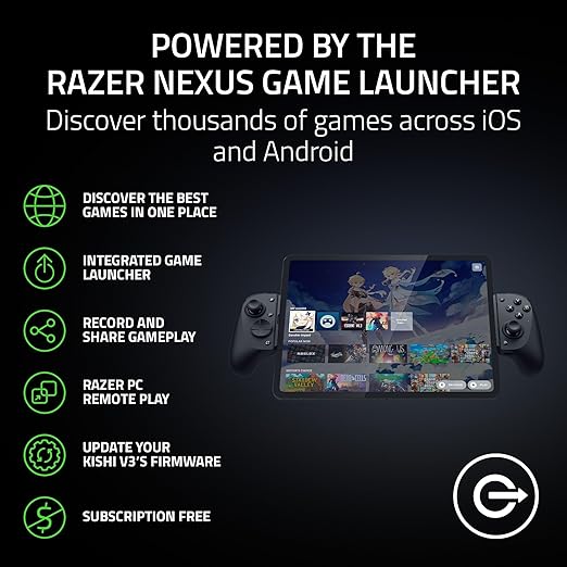 - WIRED & REMOTE PLAY FOR PC — Turn the Kishi V3 into a haptic PC controller via a direct low-latency USB C connection (cable sold separately) or remote play PC games from any launcher with Razer Nexus and enjoy AAA gaming anywhere