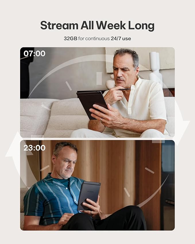 - 【Long Battery Life & Large Storage】 2600mAh battery provides days of continuous use. 32GB storage plus unlimited cloud backup ensures you never run out of space.