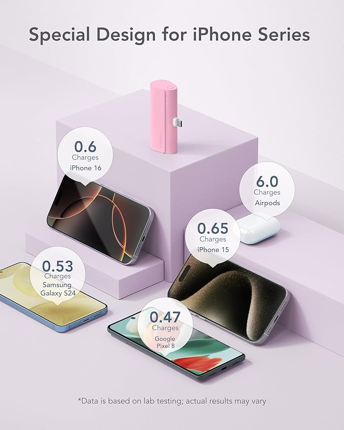 - 5000mAh Emergency Power: Provides 0.6 charges for iPhone 16, 0.65 for iPhone 15, and 0.53 for Samsung S24. Note: Does not fit phones with OtterBox cases