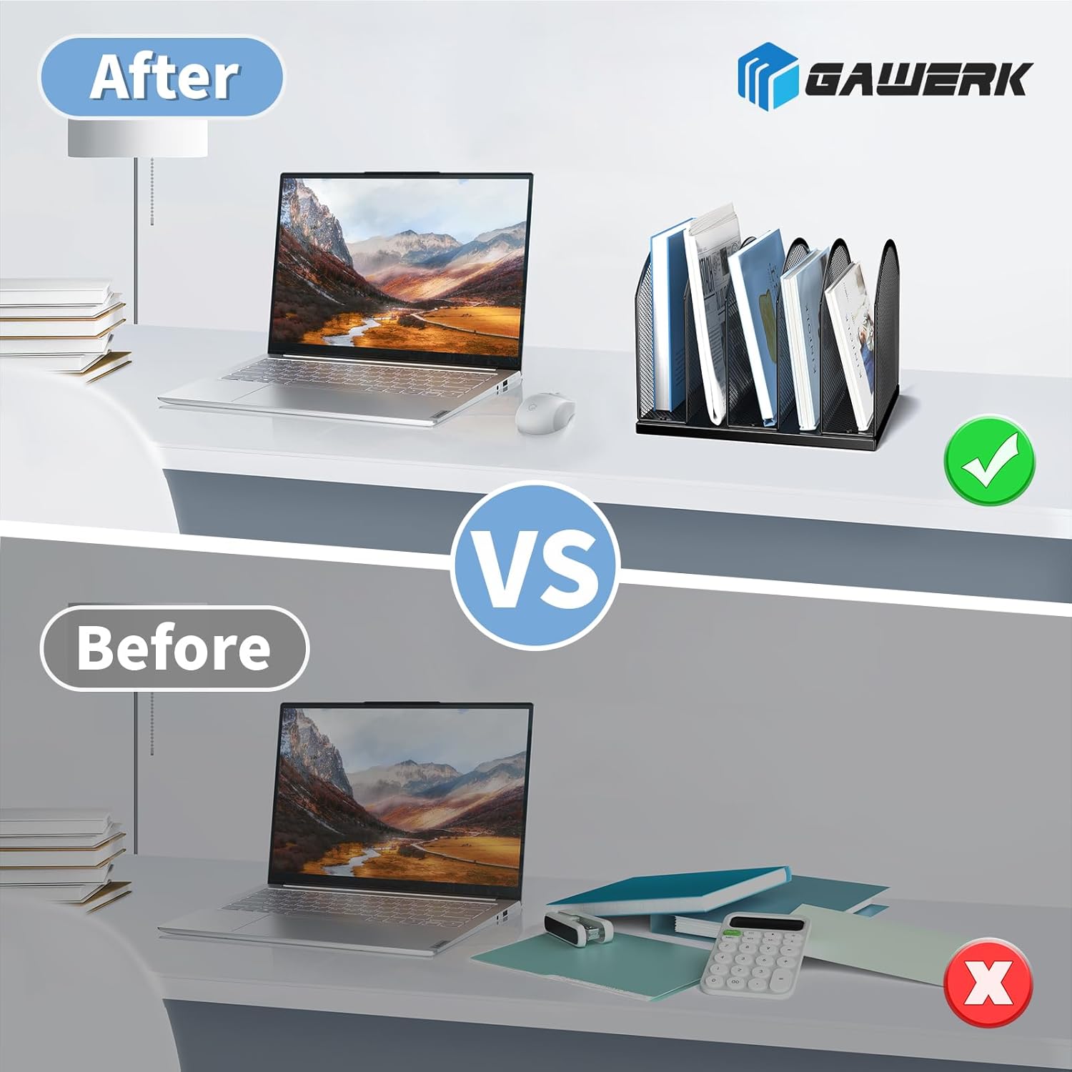 5-Section Vertical Desktop Organizer, 5-Section Mesh File Folder Stand Sorter for Office Home Classroom Organization (1, Gold)