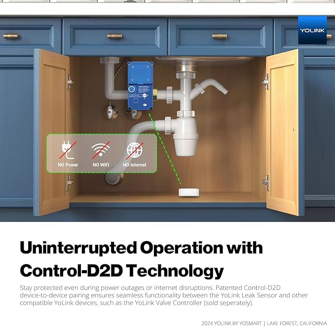 - Works even without internet: with YoLink Control-D2D, sensors can directly trigger YoLink sirens or shutoff valves for local protection during outages.