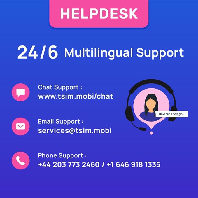 - 24x6 MULTILINGUAL SUPPORT: Get assistance in multiple languages via phone, email, or InstaChat (tsim.mobi/chat), Monday to Saturday. Contact details are included with the packaging.