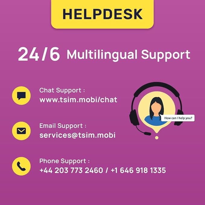 - 24x6 MULTILINGUAL SUPPORT: Get assistance in multiple languages via phone, email, or InstaChat (tsim.mobi/chat), Monday to Saturday. Contact details are included with the packaging.