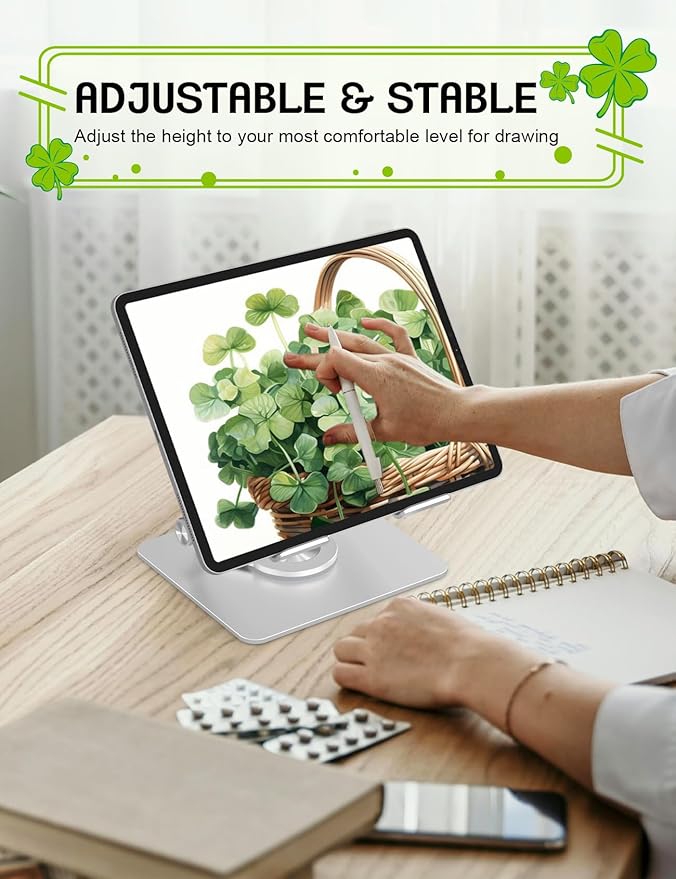 - Four-Leaf Clover Tablet Stand - A Unique Monther's day Gift:Symbolizing hope, love, faith, and luck, this tablet stand is a thoughtful gift for mom, friends, coworkers, and loved ones. It provides stable support for video calls, meetings, and studying, making every moment more inspiring