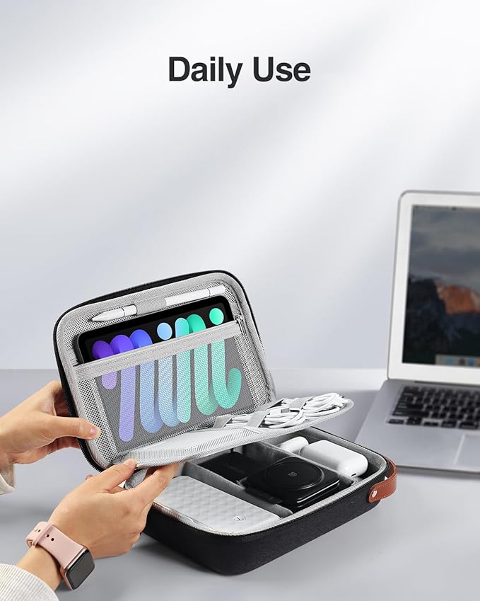 Luxtude Tech Organizer Travel Case, Portable Electronics Organizers, Hard Case for Electronics, Black Tech Bag, Charger Cases, Carrying Cases for iPad Mini (Up to 7.9’’), Mouse