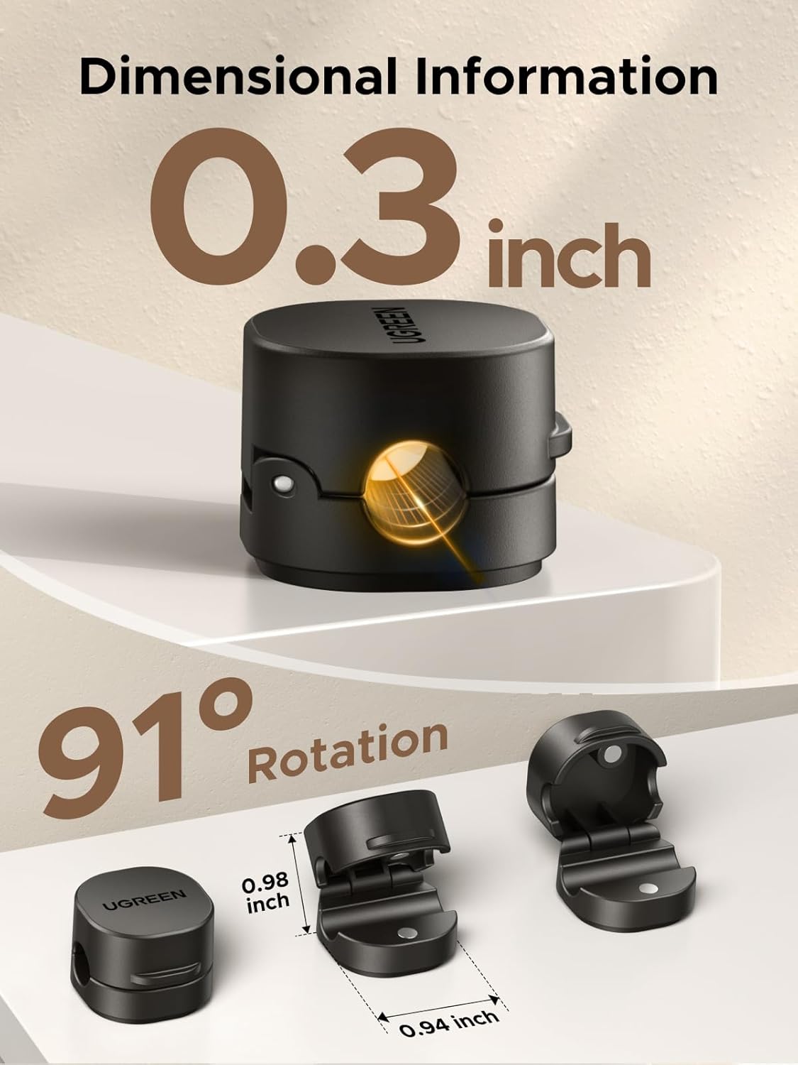 - Universal Cord Management: UGREEN magnetic cable clips wide 0.3" slot fits phone chargers (USB-C/Lightning), headphone wires, HDMI cables, and kitchen appliance cords. Keep 6 devices tangle-free simultaneously