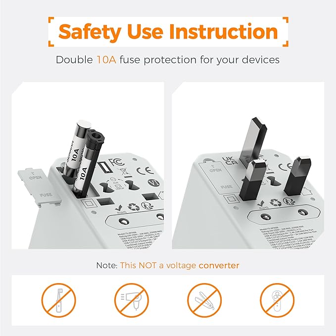 - Portable and Safety: The size and weight of this TESSAN universal travel adapter are 2.13× 1.97× 3.03 in and 6.04 oz, saving the space in your suitcase; This international travel adapter has double 10A fuse, protects your devices during use