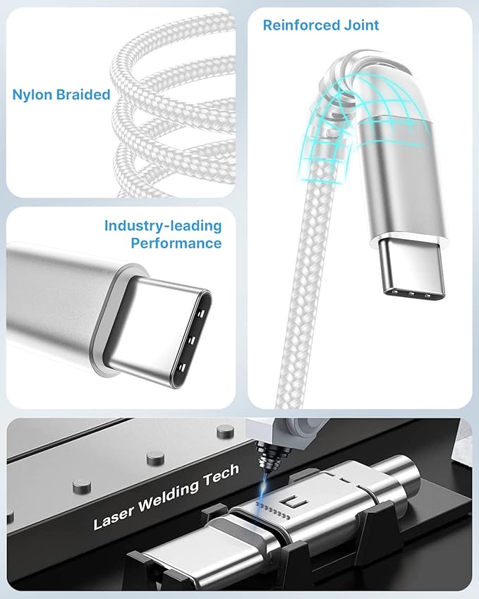 - SUPERB DURABILITY: This USB-A to USB-C cable is made of high-quality nylon material woven, with built-in laser welding technology, the metal part won't break no matter how much you bend it. 45,000 times bending test shows that the flexible and durable nylon type C cable will never rupture and no longer being bitten by pets