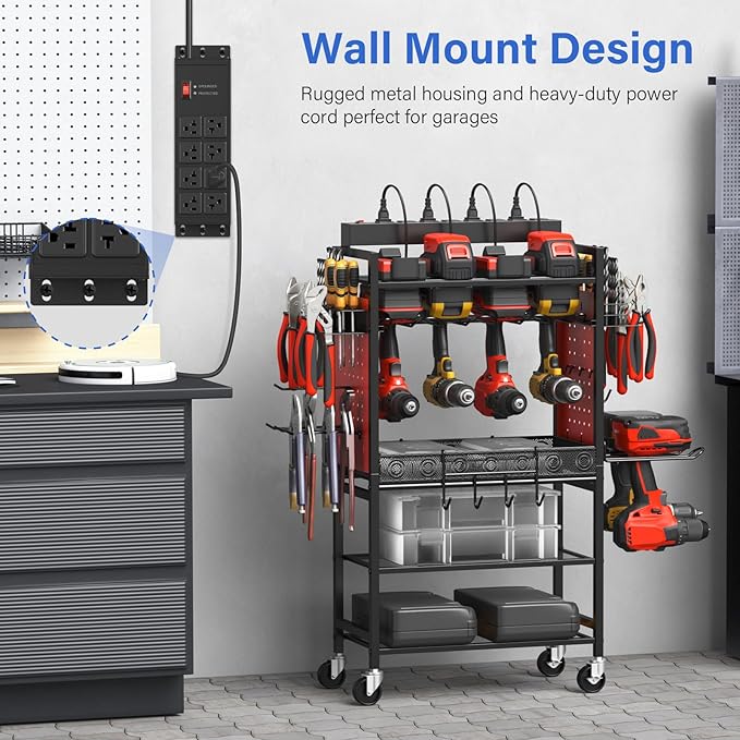 - Heavy duty magnetic power strip with 8 outlets, come with 12 gauge heavy duty extension cord. Wall mount design, 5-20R, 6-20R and come with standard 3 prong 5-15P plug.