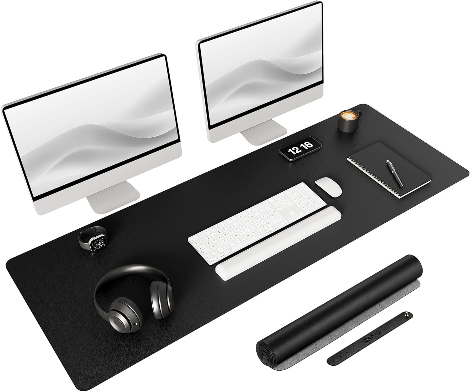 YSAGi Non-Slip Leather Desk Pad Long Size, Waterproof Laptop Computer Desk Keyboard Mat, Table Protector Blotter Mat, Large Mouse Pad for Office/Work/Home/Decor(Black, 47" x 17")