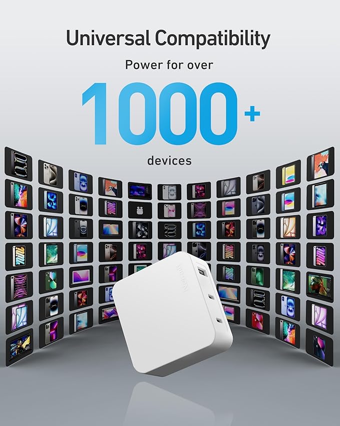 - Universal Compatibility: This 67W 3 port usb wall charger is compatible with the MacBook Pro/Air, iPad Pro, iPhone 16/15/14/13 Series, Samsung Galaxy S24 Ultra, Steam Deck, and More