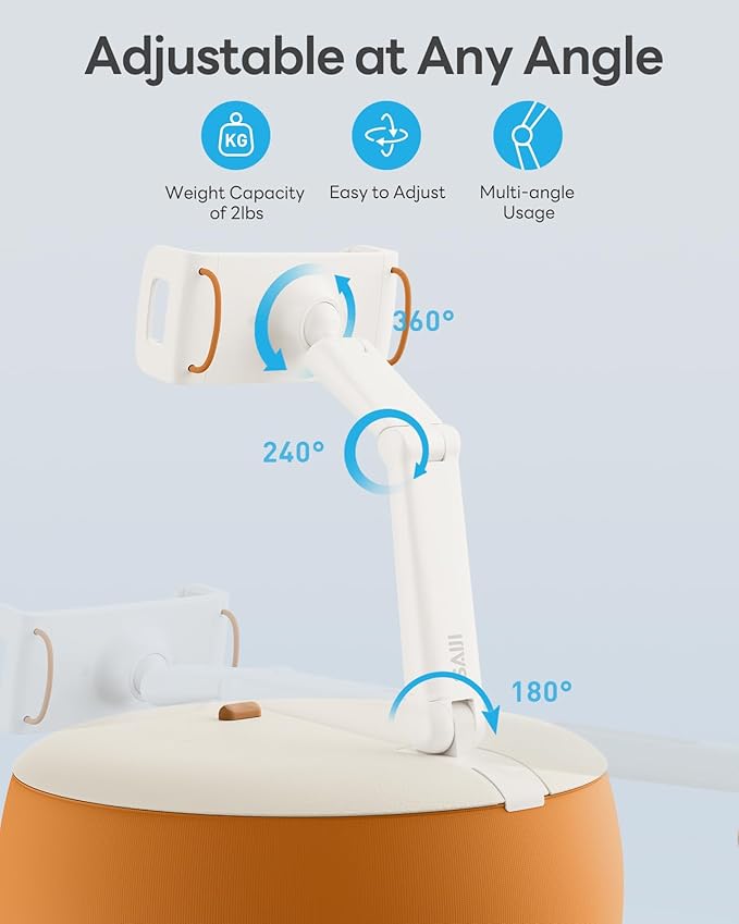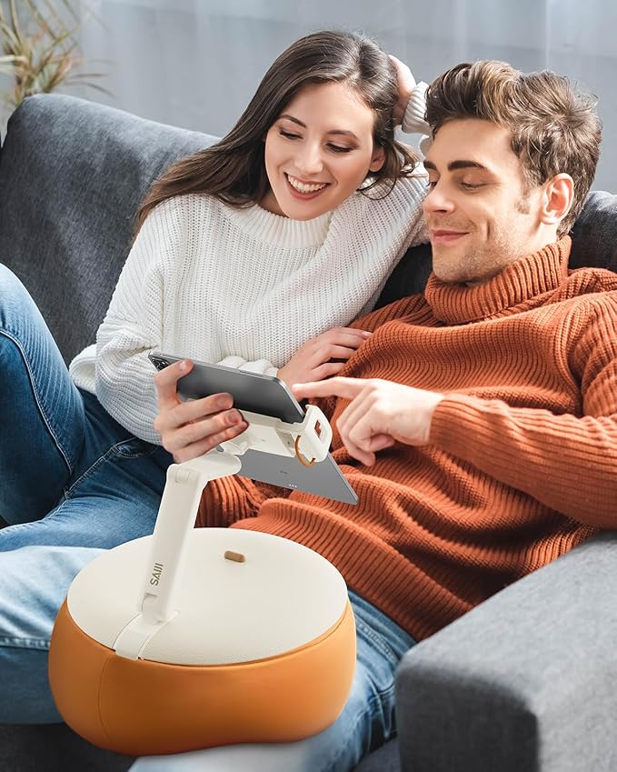 - Upgraded Double-jointed Arm: Deformable bean bag & 360° clamp mount & flexible Upgraded Double-jointed Arm meet the comfort of watching the screen when you are sitting, lying down or even reclining. So you can free your hands while relaxing your neck and keeping your sight aligned.