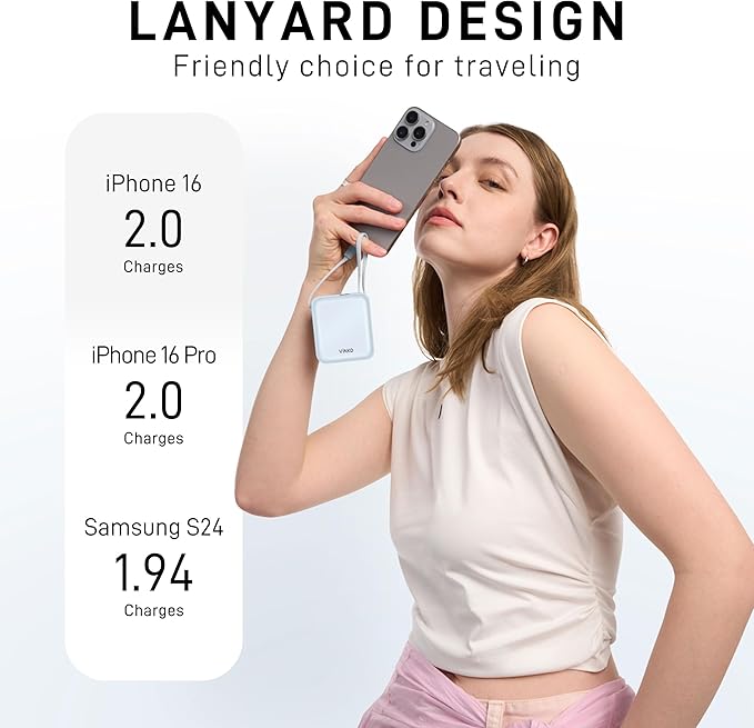 - COMPACT&PORTABLE: This power bank usb c fast charger measures just 2.9 x 2.5 inches (credit-card size), offering a more compact overall footprint at only 176g. Its thoughtfully thicker build (1 inch) delivers greater capacity and rugged durability, while enhancing grip comfort. With a built-in cable and sleek design, this power bank with cable slips effortlessly into any pocket,Perfect for daily commutes, travel, or outdoor adventures,quickly powers up your phone.