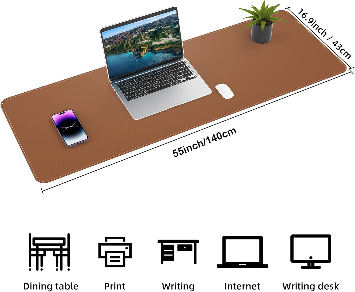 AFIING Leather Desk pad Protector, Large Non-Slip Office Desk Mat with Natural Cork & PU Leather, Waterproof Writing Mouse Pad for Office and Home (55in*17in,Brown)