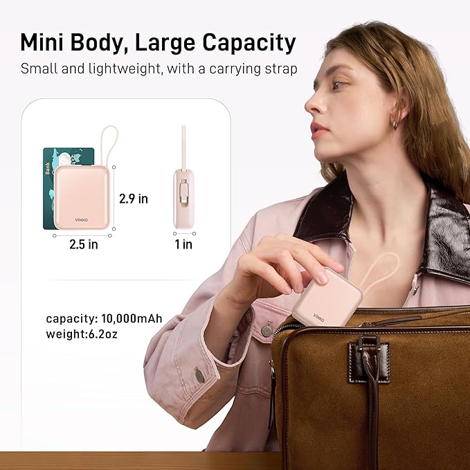 - COMPACT&PORTABLE: This portable charger power bank measures just 2.9 x 2.5 inches (credit-card size), offering a more compact overall footprint at only 176g. Its thoughtfully thicker build (1 inch) delivers greater capacity and rugged durability, while enhancing grip comfort. With a built-in cable and sleek design, this rechargeable phone charger slips effortlessly into any pocket,Perfect for daily commutes, travel, or outdoor adventures,quickly powers up your phone.