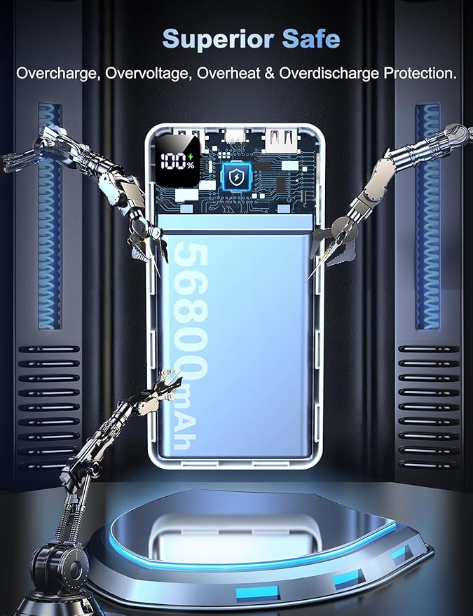 - Massive 56800mAh Capacity – Power That Goes the Distance: Designed for power-hungry users, this 56800mAh portable charger delivers days of reliable energy for iPhone 16/15/14/13 Pro Max/Pro/Plus or Sumsang, Google Pixel. Charge your phone up to 11 times or your tablet multiple times—ideal for long trips, camping, or business travel. Say goodbye to low battery anxiety and enjoy the freedom of staying connected, wherever your journey takes you.