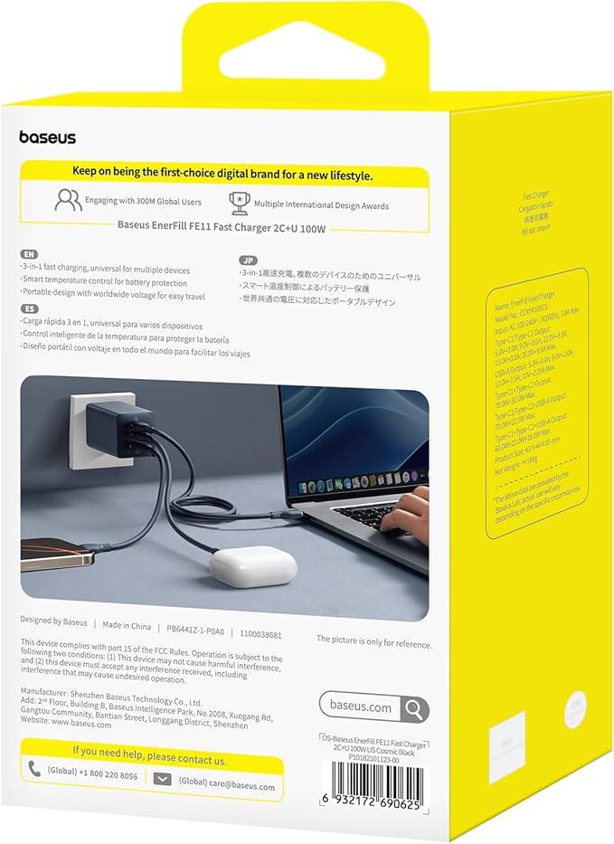 - Included Components : Baseus 100W USB C Charger, User Manual