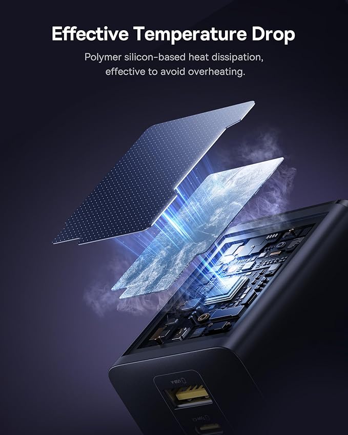 - Effective Temperature Drop: This compact wall charger adopts advanced high-polymer silicon material for superior heat dissipation and the Baseus Cooling technology (BCT) for real-time temperature monitoring. With this efficient thermal management, the 100W USB-C fast charger can stay cool all the time to ensure safe fast charging while extending the battery lifespan for your devices.