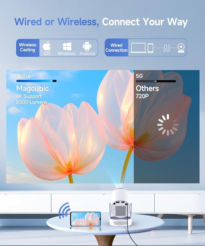 - Clarity for Casual Use: Enjoy native 720P resolution with 4K support, suitable for casual use in your bedroom, outdoor, or living room. This portable projector is an affordable option for creating a basic home cinema experience.