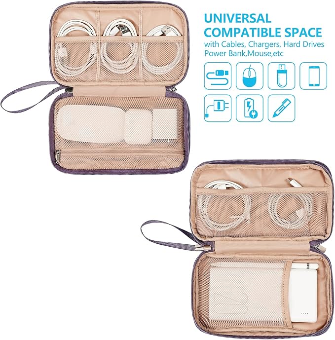 NISHEL Travel Cord Organizer Case, Double Layers Tech Electronic Bag, Essentials for Charger, Cable, Phone, Flash drive, Purple