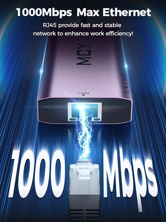 - 【100W PD Pass-Through Fast Charging】The usb laptop hub has a USB Type C 100WPD charging port, which can quickly charge your laptop/tablet/phone when you use other ports. When the thunderbolt usb c hub is fully loaded, there is no need to worry about the laptop losing power. And when you work or play, you can connect to the 1000Mbps Ethernet port of the powered usb c to ethernet adapter, providing you with a stable and fast network, ensuring efficient and fast work and ultra fast internet experience.