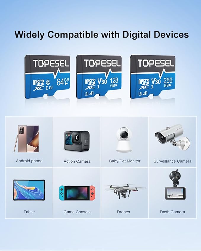 - 256GB High-Capacity Storage: The TOPESEL 256GB Micro SD Card 2 Pack offers ample storage space for your photos, videos, and files. Store hours of 4K video or thousands of high-resolution images with ease