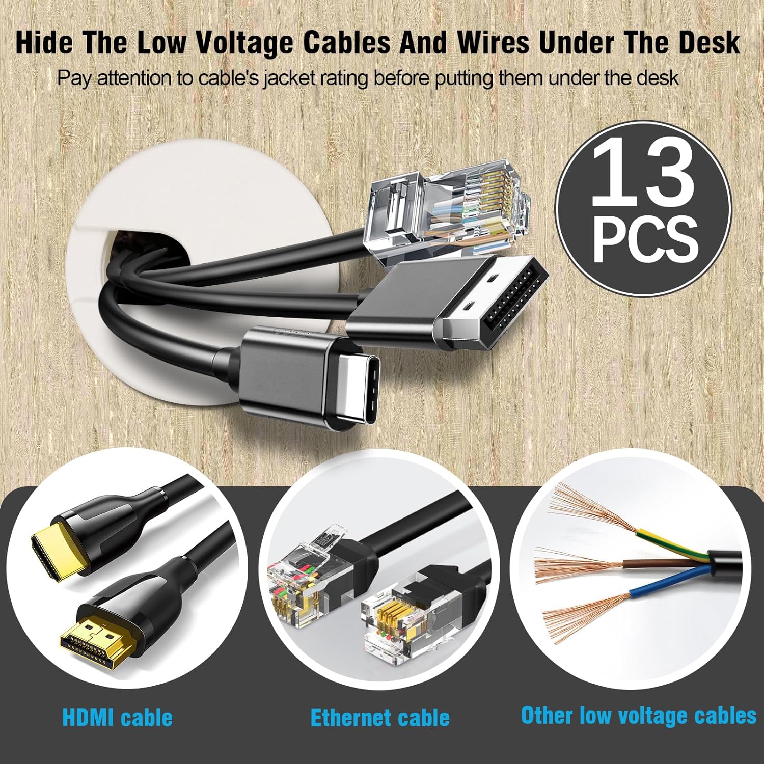- MANAGEMENT PERFORMANCE -- Each plastic hole cover features a unique split design, providing a clean and neat way to organize and route cables. The removable lid allows for easy adjustments and modifications, ensuring smooth and efficient cable management. This design also reduces the risk of the grommet becoming clogged or obstructed, enhancing performance and durability.