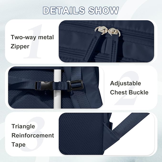- Carry-On Backpack for Women: The backpack measures 11.42×5.12×17.13 inches (approx. 29×13×43.5 cm) and complies with most airline carry-on size restrictions (please verify your flight’s specific requirements). It fits under the airplane seat, saving you checked baggage fees, making it the perfect companion for travel and business trips.