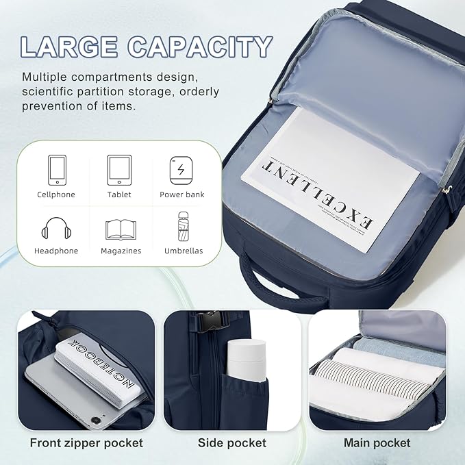 VECAVE Carry On Backpack for Women, Airline Approved Large Travel Backpack Flight Approved, Waterproof 14 Inch Laptop Backpack Business Work Backpacks Bag Men Mochila De Viaje Blue.