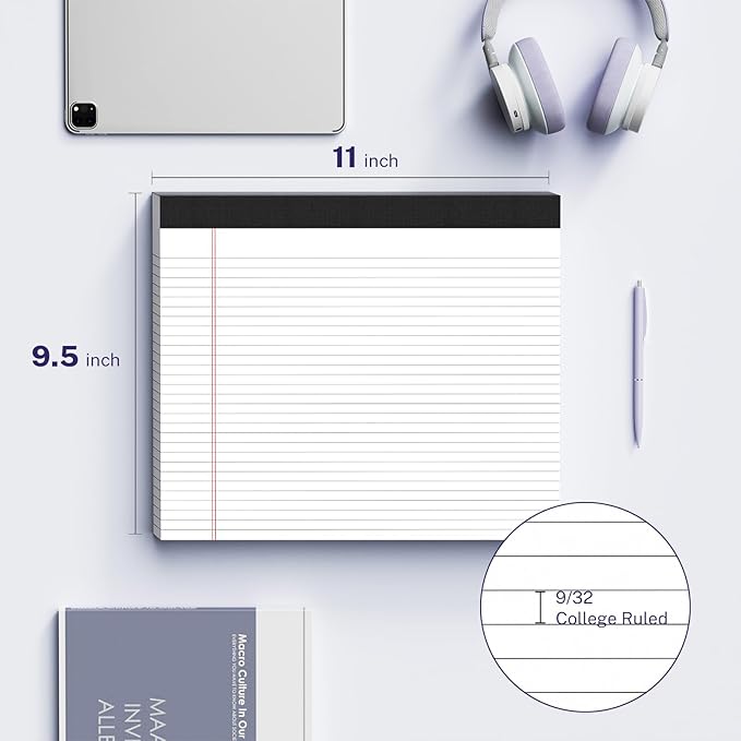 - LANDSCAPE WORKSPACE: Extra-wide 11" x 9.5" format provides 30% more lateral writing space than standard legal pads, ideal for spreadsheets and legal document drafting