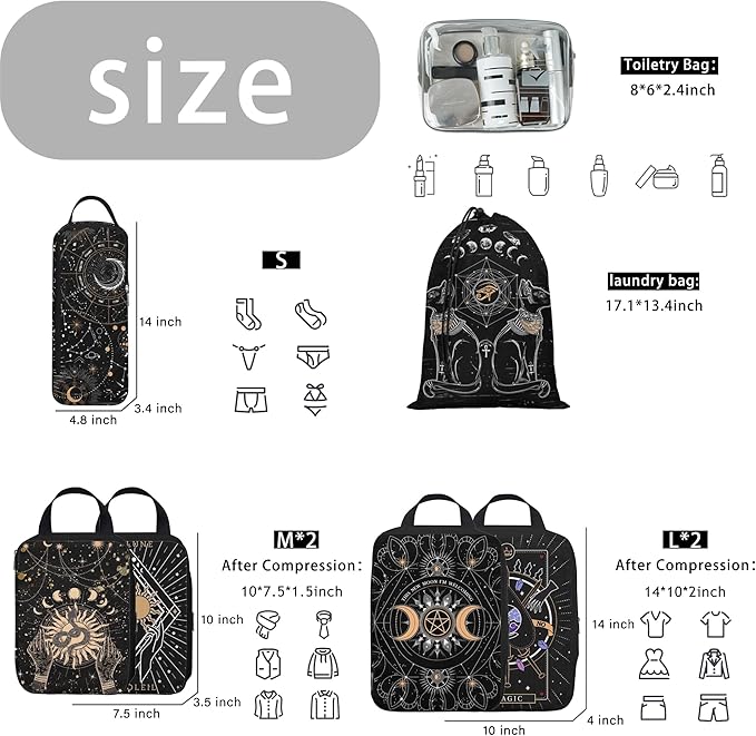 - Ideal Design for Travel Packing Cubes: Are you tired of rummaging through a jumble of clothes to find your T-shirts while traveling? Worried about leaving valuables behind in your hotel room? With our compression travel cubes, these worries disappear. Each packing cube features a unique pattern design, which makes it easy to find clothes while allowing you to have your own travel style and stay organized easily