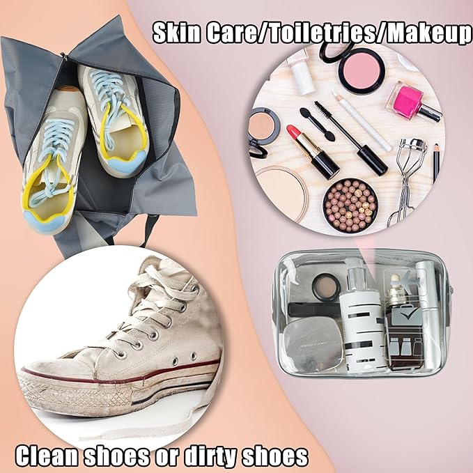 - 8-Piece Compression Bags for Travel Set: Includes 2 different sizes of travel compression bags for packing(4 pieces), 1 toiletry bag, 1 travel shoe bag, 1 tube cube, 1 drawstring laundry bag. Every experienced traveler understands the importance of organization, and with these compression travel cubes, packing becomes effortless, and also makes airport security checks quick and convenient