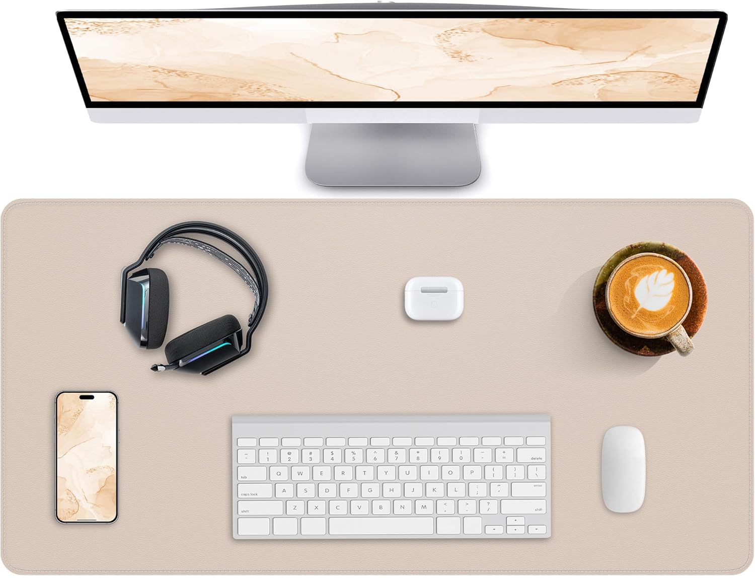Leather Desk Pad Protector,Office Desk Mat,Large Mouse Pad, Non-Slip PU Leather Desk Blotter,Desk Pad,Waterproof Desk Writing Pad for Office and Home (Beige,35.4" x 17")