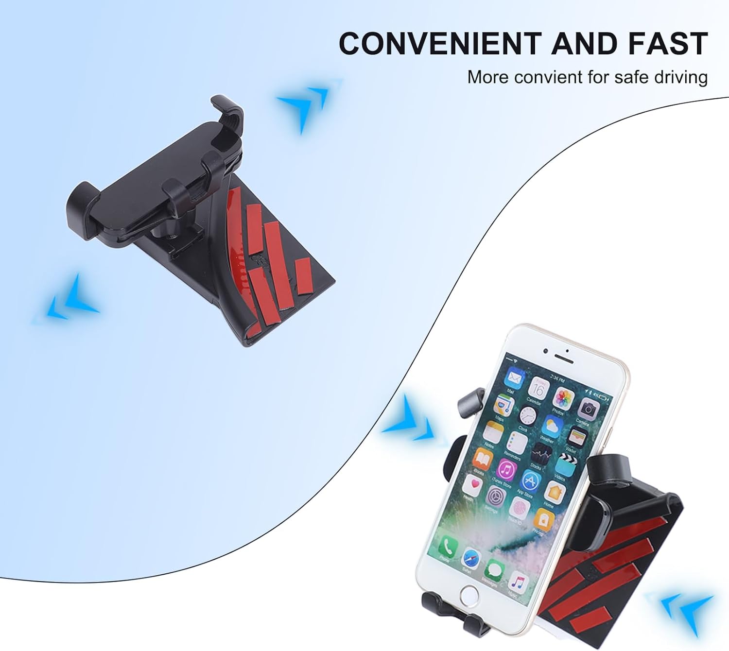 - 【Easy to install】Dash Panel Cell Phone Holder Perfectly integrated with the central control navigation screen, the back has adhesive paper, which is more firm and not easy to fall off. Just tear off the adhesive paper and put it on the left and right. No damage to the body, no need to punch. There is no need to install an iron sheet on the back of the phone. The integrated phone holder can directly fix the phone.