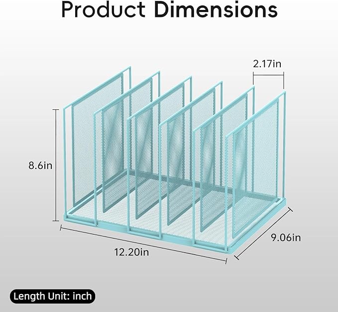 - [Elegant & Clean] This metal desk file organizer features anti-rust, smooth surface. The steel mesh design helps reduce dust buildup. Assembly Dimension:12.2"W x 9"D x 8.6"H