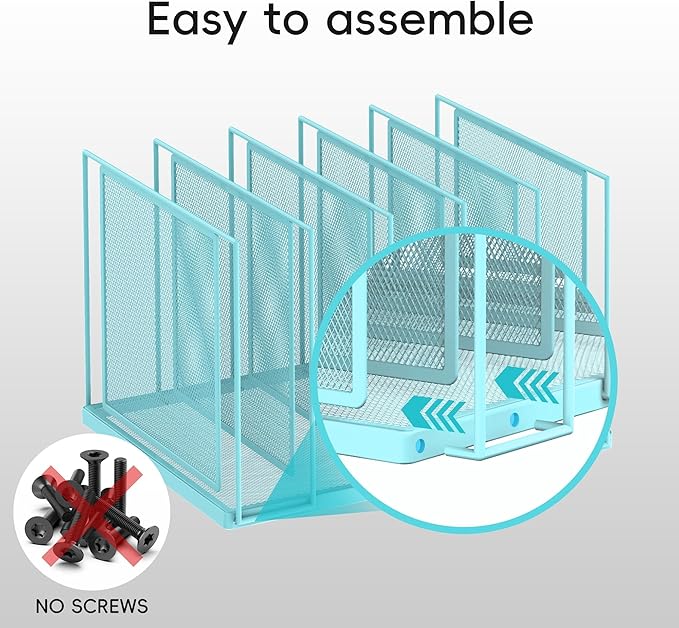 - [Easy to Assemble] No screws, no screwdriver! Just pull the desk organizer out of the box, thread the hook of this file sorter into the holes. Then you can get a desktop file organization much safer and easier.