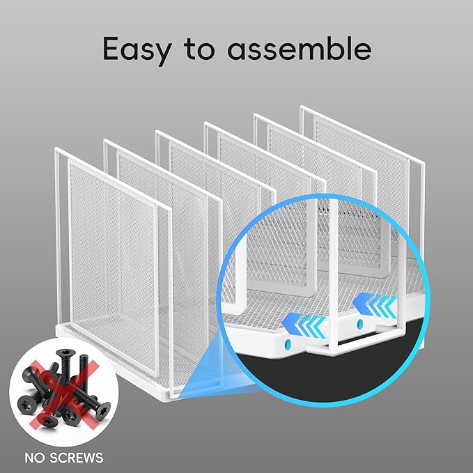 - [Easy to Assemble] No screws, no screwdriver! Just pull the desk organizer out of the box, thread the hook of this file sorter into the holes. Then you can get a desktop file organization much safer and easier.