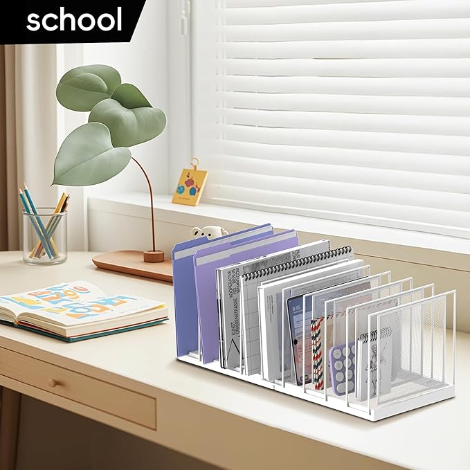 - [9 File Compartments] Our 9-section file folder organizer provides more storage space for files, books, mails, paper and magazines. 9 vertical sorters can hold your documents and laptop upright, allowing you to easily keep workspace tidy and organized.