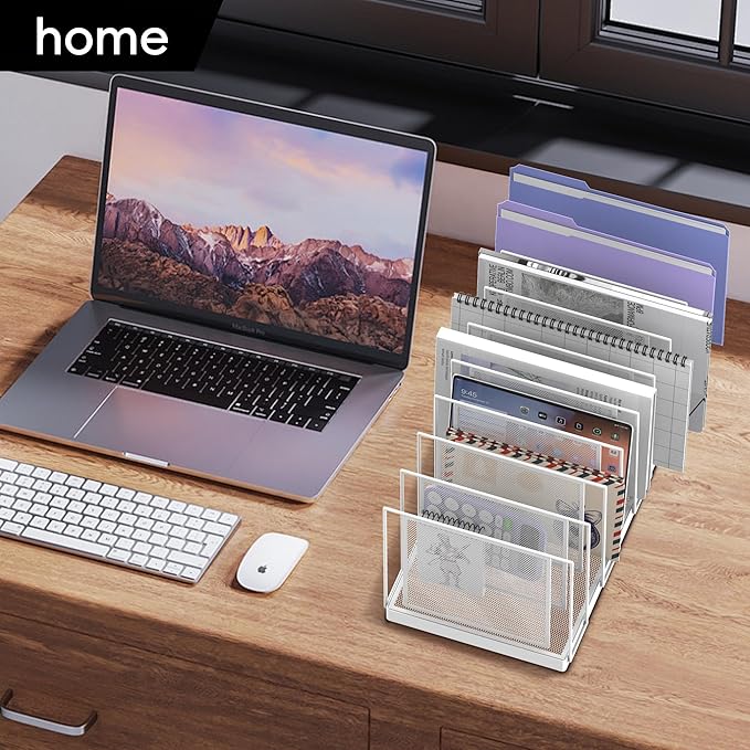 - [Stable Metal Structure] The vertical desktop file organizer is made of high-quality metal to ensure sufficient stability. At the same time, the sturdy steel mesh and powder-coated surface of this file folder ensure durability and anti-deformation.
