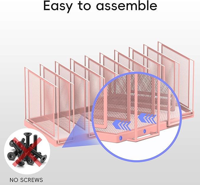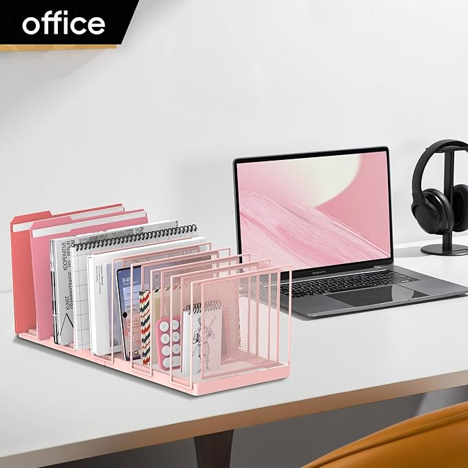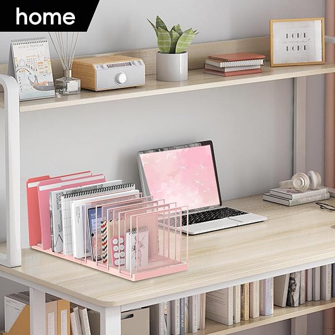 9-Section Desk File Organizer, Vertical File Holder, Mesh Desktop File Folder Metal File Organizer Stand for Office Home Classroom, Pink