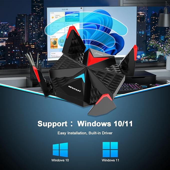 - 【Easy Initial Setup】No need for physical CD drivers. The usb wifi adapter is compatible with Windows 11/10, offering an easy setup process for a smooth and quick connection. Note: To connect to the 6 GHz WiFi band, Windows 11 is required; Windows 10 supports the 5 GHz and 2.4 GHz bands only. This usb wifi adapter also supports AP mode and can create hot spot WiFi for multiple mobile devices to use