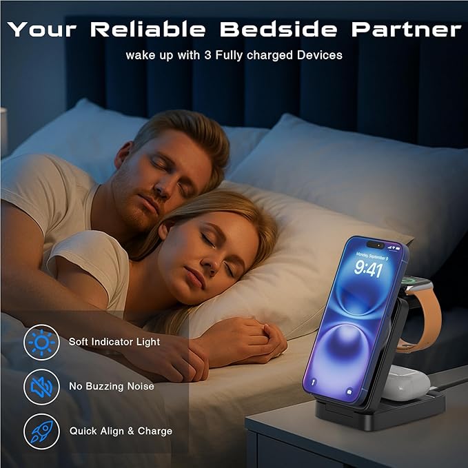 - 【Broad Compatibility】:With lastest technology adopted, this charging station is flawlessly compatible with your Apple devices. 【iPhone Series : iPhone 16e/16 Pro Max/16 Pro/16/16 plus/15 Pro Max/15 Pro/15/15 plus/14 Pro Max/14 Pro/14/14 plus/ 13/13 Pro,/13 Pro Max/13 Mini/12 Pro/12 Pro Max/12/11 Pro/11 Pro Max/11/SE/XS/XS Max/XR/X/8/8 Plus】;【Airpods Series: Airpods 4/3/Pro 2/Pro, AirPods (3rd generation), AirPods 2 Wireless Charging Case】;【iWatch Series: iWatch Ultra/SE/10/9/8/7/6/5/4/3/2/1】 .