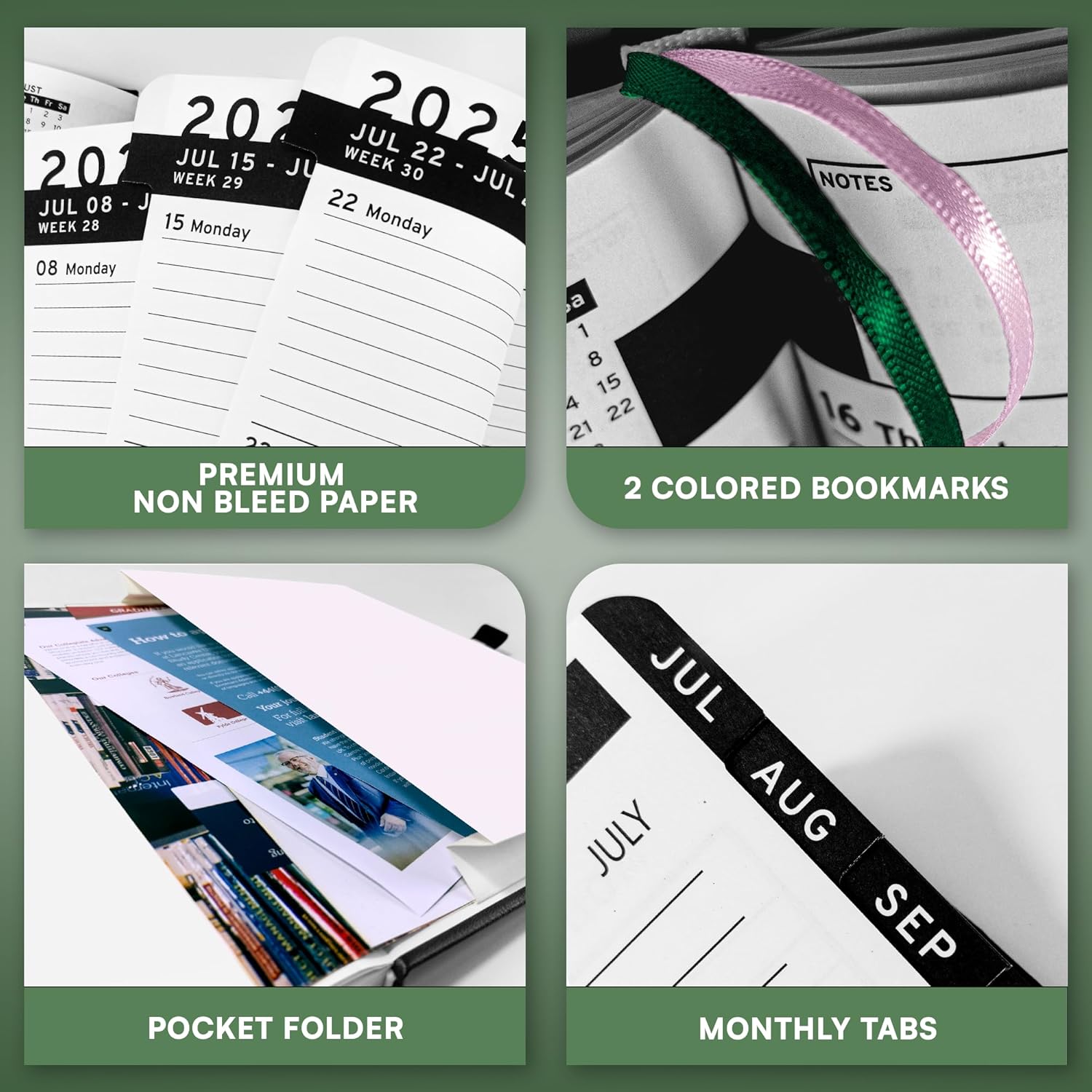 Ensight 2025-2026 HARDCOVER Leather Planner Weekly & Monthly - 6.5x8.5 Inches - Academic Planner Business Personal or Student - Pen Holder, Thick Paper, July 2025 - June 2026 (Green)
