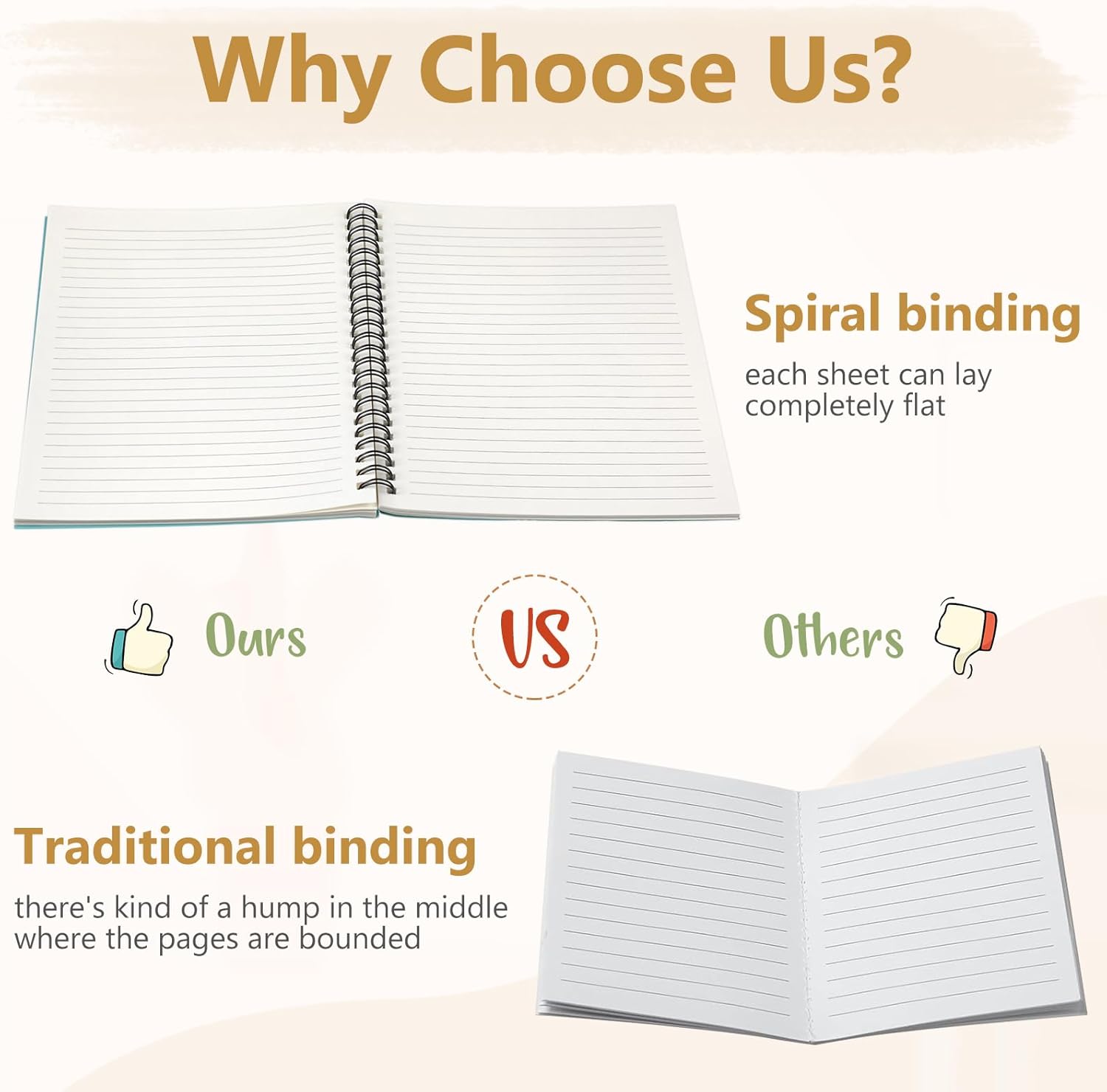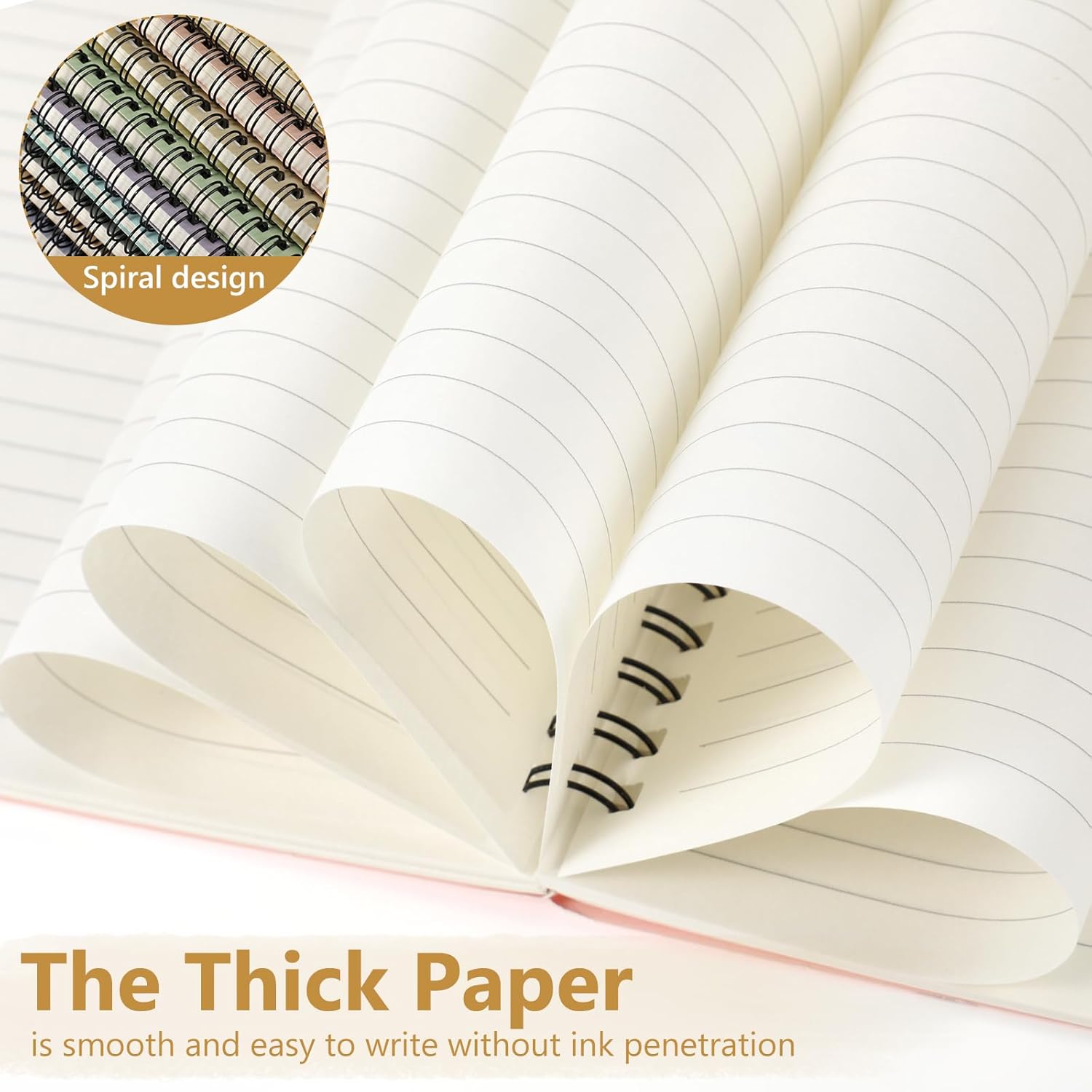 - Smooth to Write: each spiral journal notebook has 60 sheets (120 pages), and each page adopts quality 80gsm white paper, smooth and easy to write, preventing ink infiltrating into the next page, and mild colors can avoid eye fatigue and bring comfortable experience