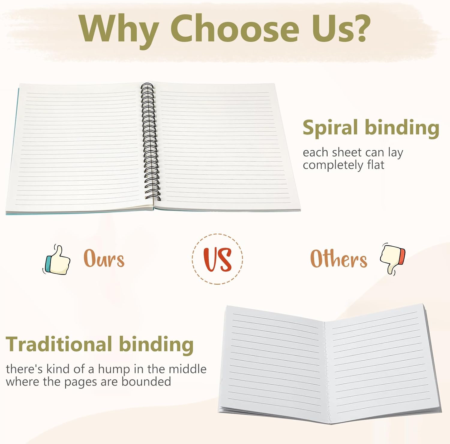 - Smooth to Write: each spiral journal notebook has 60 sheets (120 pages), and each page adopts quality 80gsm white paper, smooth and easy to write, preventing ink infiltrating into the next page, and mild colors can avoid eye fatigue and bring comfortable experience