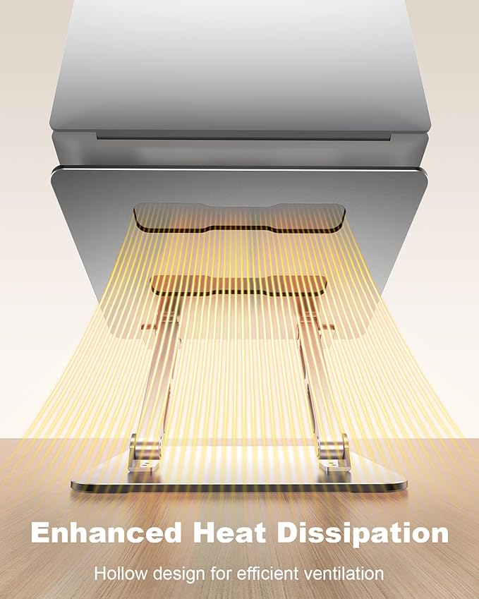 - 【Ergonomic Design for Comfort】Tired of back pain from long hours at your desk? Our laptop stand features adjustable height (1.88"-9.88") and angle to align your screen perfectly with eye level. Whether working indoors or outdoors, this helps you maintain a neutral spine position while typing - dramatically reducing neck and shoulder strain.