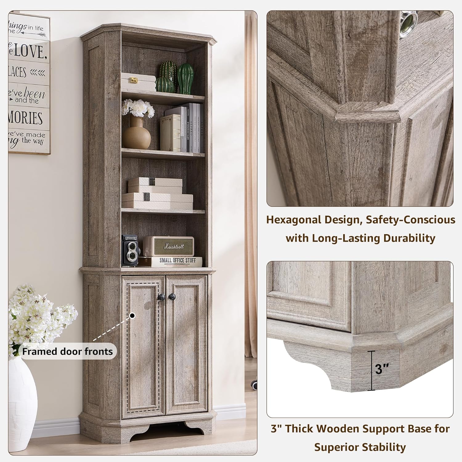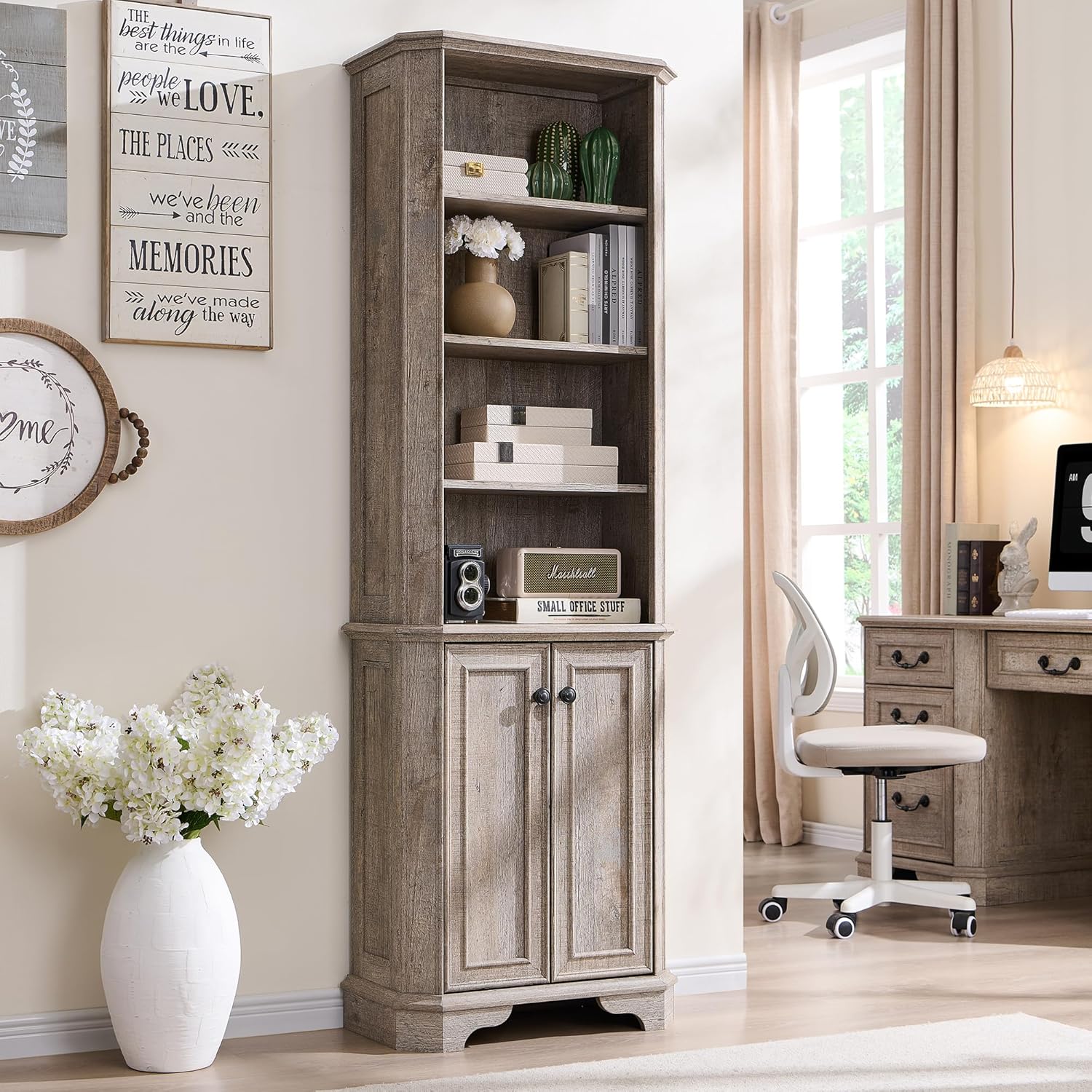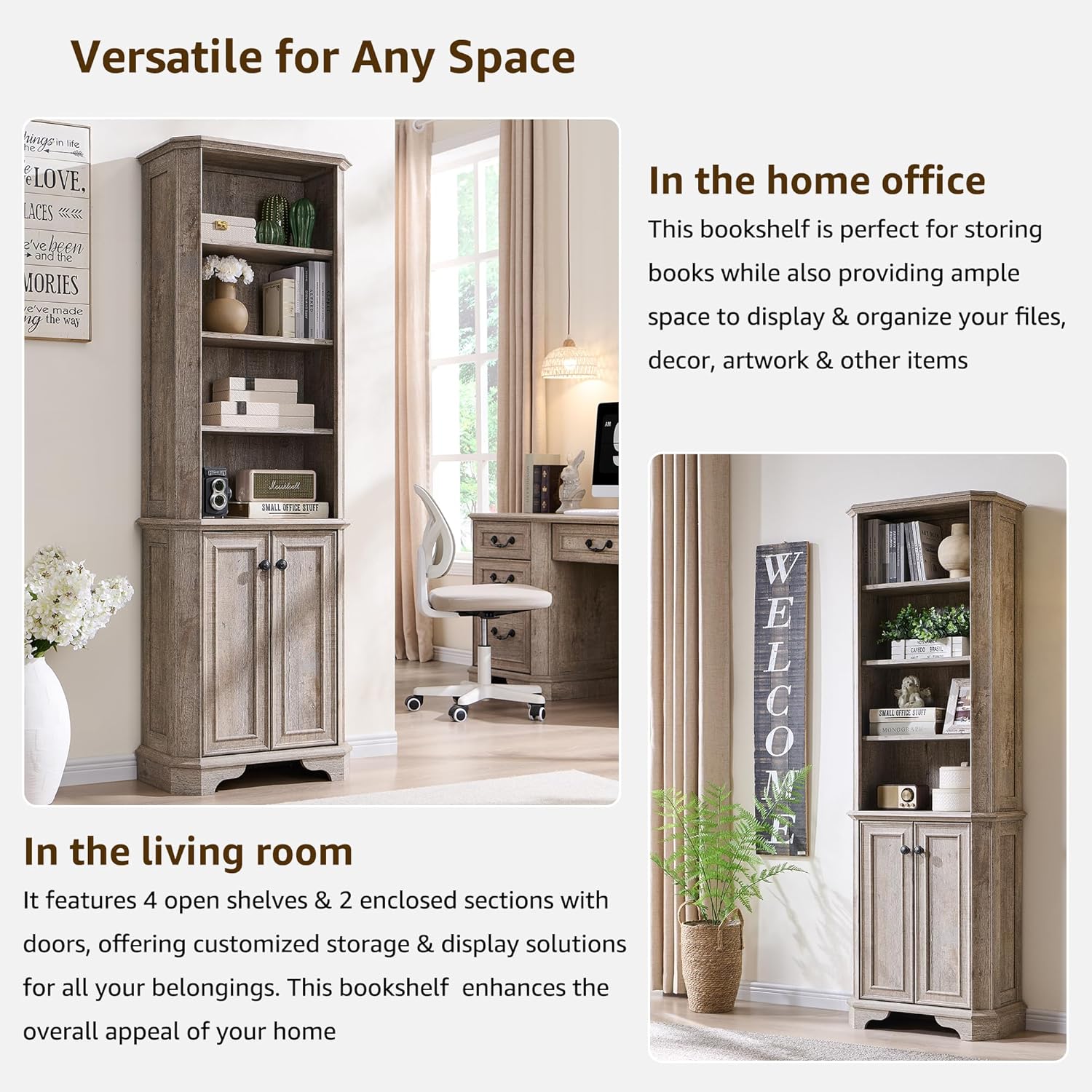 - Multipurpose Storage for Any Room: More than just a book shelf with storage, this versatile unit functions as a display case, or storage organizer. Use it in an office for books, in a living room for décor, in a kitchen for cookware, or even in a classroom or library as a dedicated book corner. The timeless farmhouse style seamlessly complements any setting